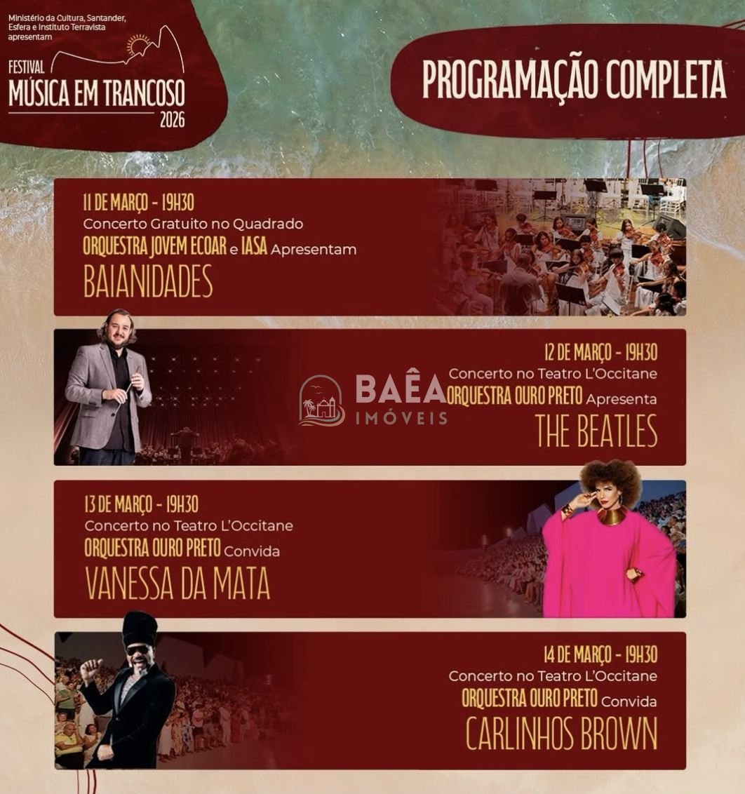 O Festival Música em Trancoso 2026 está chegando e promete agitar a costa da Bahia entre 11 e 14 de março! Este evento icônico mistura música de alto nível, praias paradisíacas e o charme do Quadrado de Trancoso, sendo o momento ideal para planejar sua viagem e pensar em investir em Trancoso. Para quem quer […]