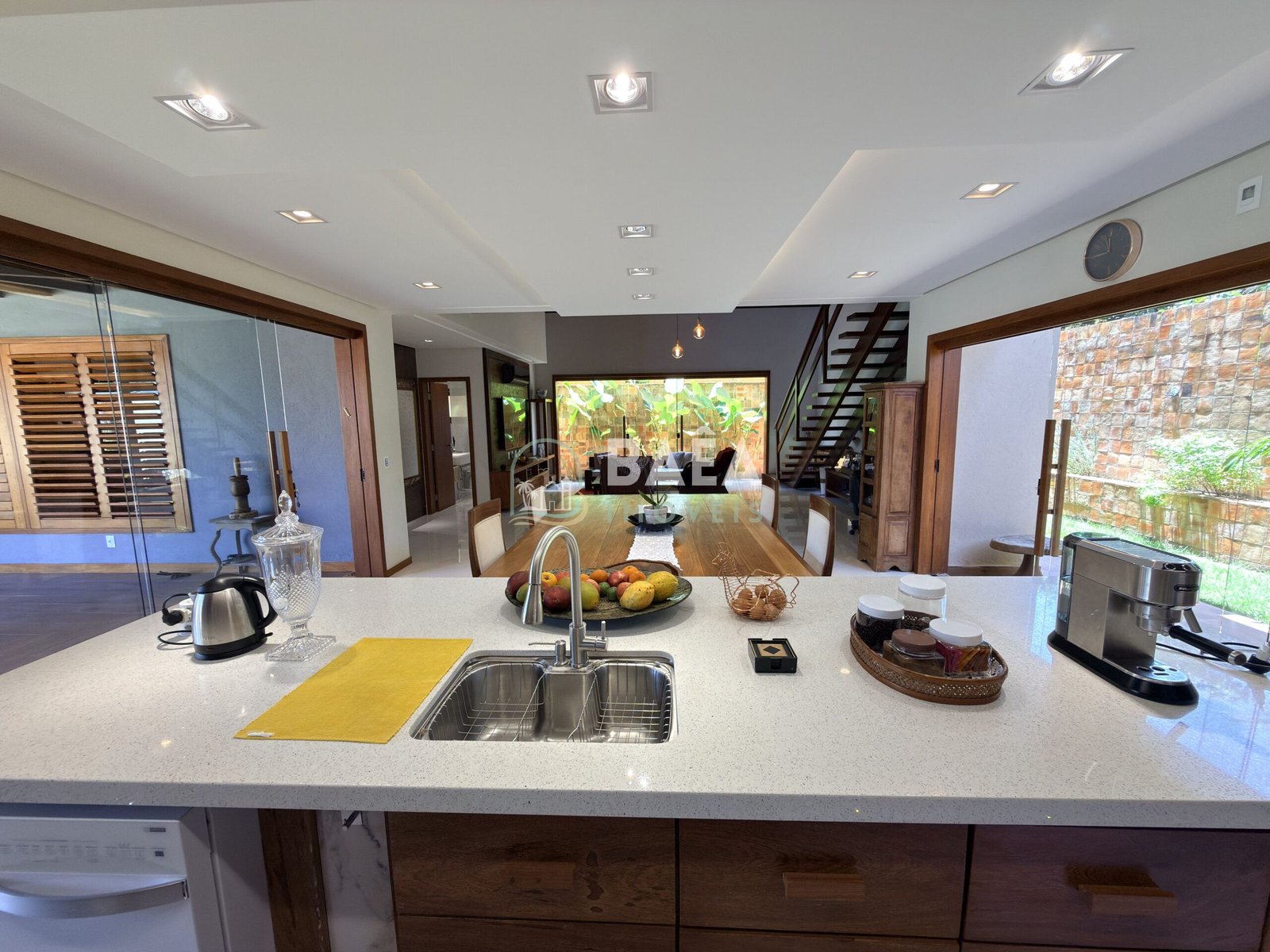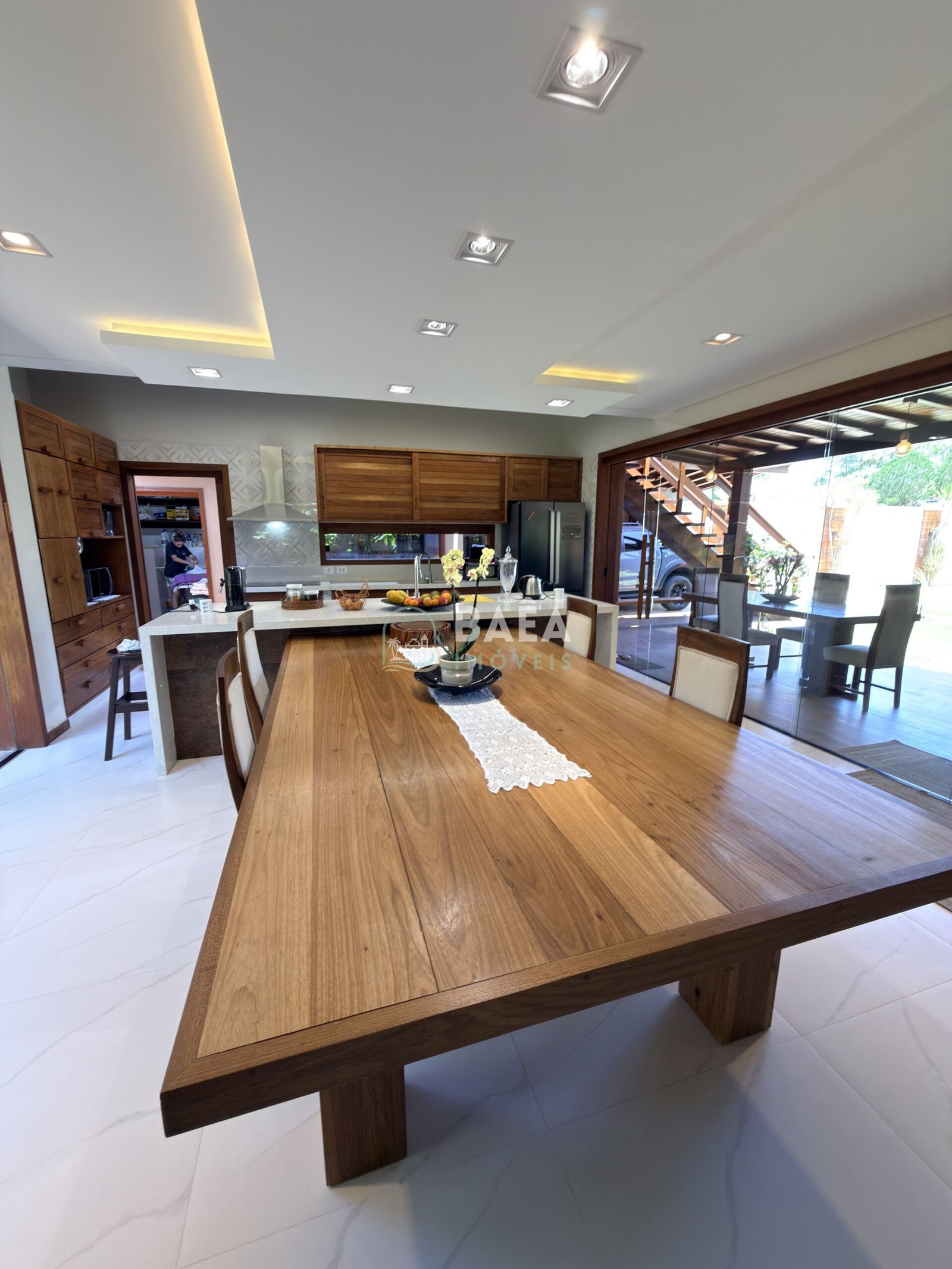 Com 500m² de área construída em terreno de 1.000m², a casa de luxo Arraial d’Ajuda apresenta 5 suítes amplas, incluindo master com closet, banheira de hidromassagem e varanda privativa com vista exuberante. A sala principal ostenta pé direito duplo, integrando estar, jantar e área gourmet equipada, perfeita para eventos familiares ou recepções elegantes .