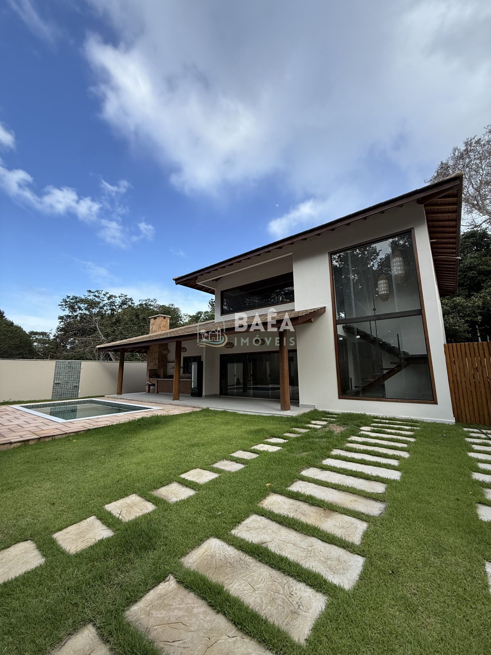 Em Arraial d’Ajuda, a apenas 5 minutos do centro, esta casa em loteamento fechado combina conforto, privacidade e praticidade em um projeto perfeito para morar ou veranear: são 4 suítes (sendo 1 master), 260 m² de área construída em terreno de 490 m², piscina privativa, área gourmet integrada e cozinha completa — tudo pronto para viver o melhor do litoral com conveniência e segurança.