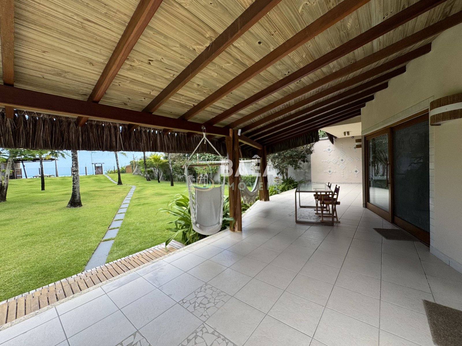 Com 7 suítes, distribuídas entre a casa principal e dois chalés independentes, oferece espaços amplos, varandas acolhedoras e integração total com o mar.