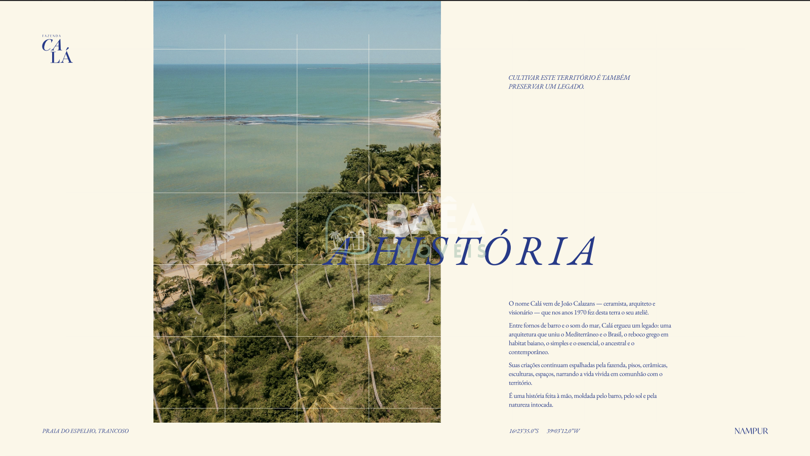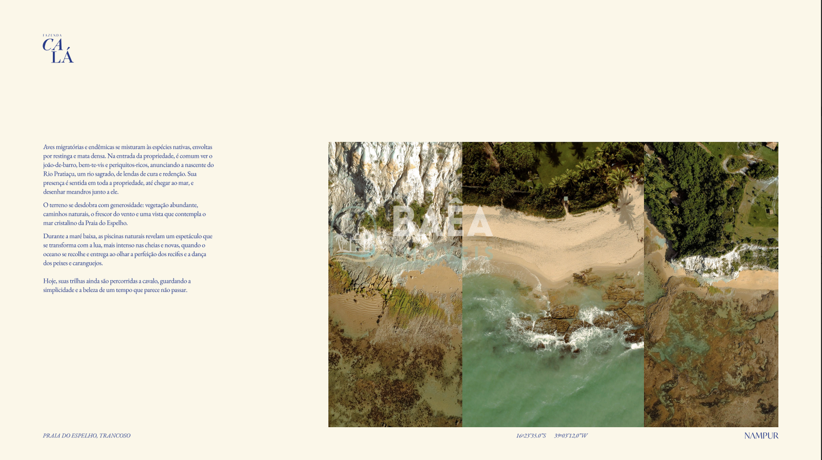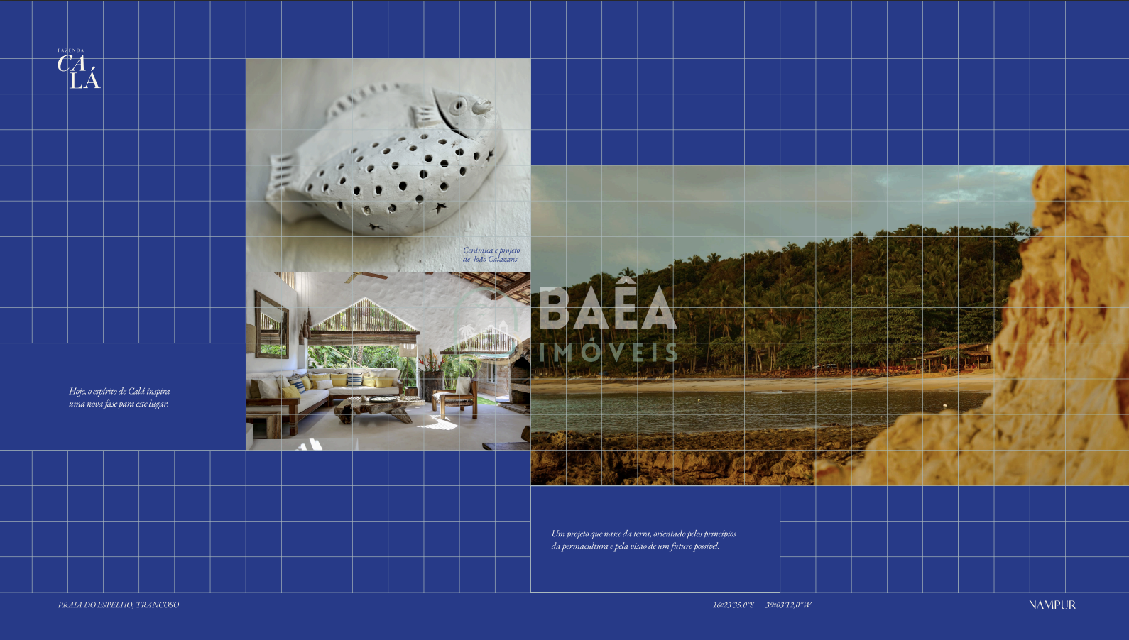 Fazenda Calá é um empreendimento absolutamente singular na Praia do Espelho, entre Trancoso e Caraíva, desenhado para quem busca mais do que um imóvel: busca um novo jeito de viver. Em um cenário de mata atlântica preservada, rios sagrados e mar de águas cristalinas, o projeto une arte, natureza e propósito em um conceito de luxo discreto, onde o verdadeiro privilégio é o silêncio, o tempo e a relação profunda com a terra.